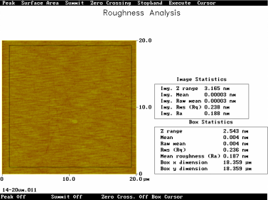 蓝宝石基片抛光后AFM形貌(Ra=0.188nm)